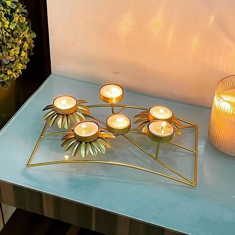 | Product Type | Compact Golden Flower Candle Holder |